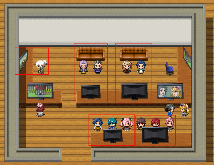 ソファーに合わせたサイズ、TVとキャラの中心を合わせた大きなサイズ、